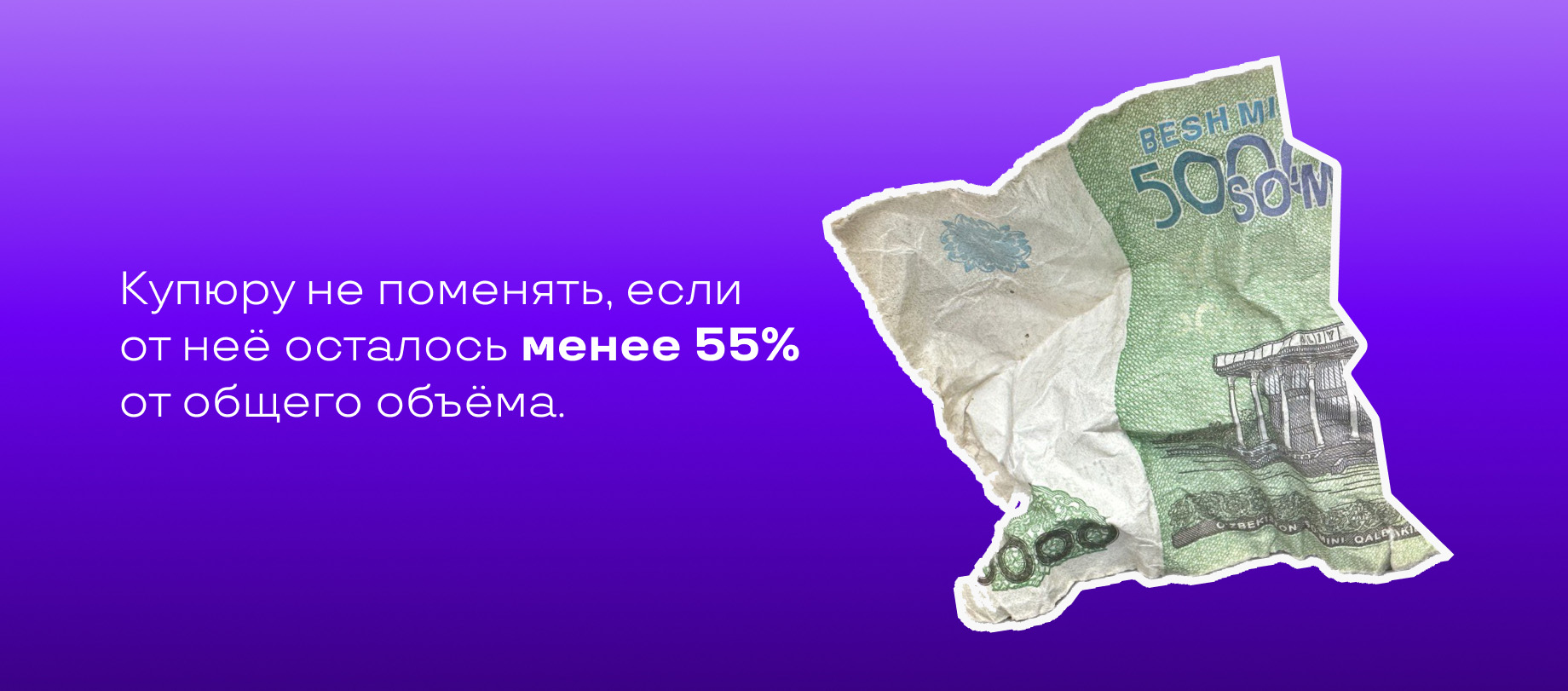 В 2018 году Центробанк Узбекистана выпустил новые правила, определяющие, какие купюры считаются годными к обращению, а какие нет.